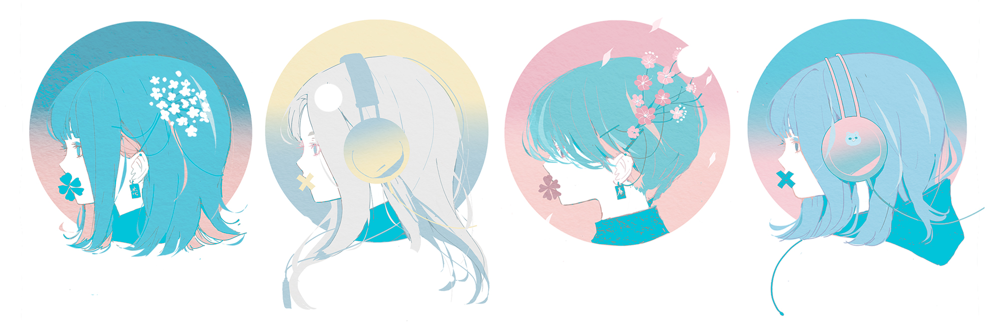 淡い和の色のグラデーションヘッドホンは、可愛く決まる。